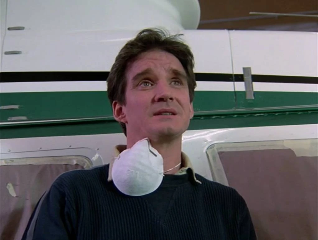 Angelo runs the paint shop across the runway from Santini Air at Van Nuys. Earlier the in the episode, a Jetranger in Santini Air colors picks Margo Brewster up and she disappears. James Graydon and Cooper turn up at Santini Air to demand to know what happened to her. Dominic insists that his Jetranger is not serviceable and shows them the damaged tail rotor but Graydon insists that it was definitely a red, white and blue painted chopper exactly like Dominic's. Caitlin suggests that they go see Angelo as he does the paint jobs for Santini Air's choppers.