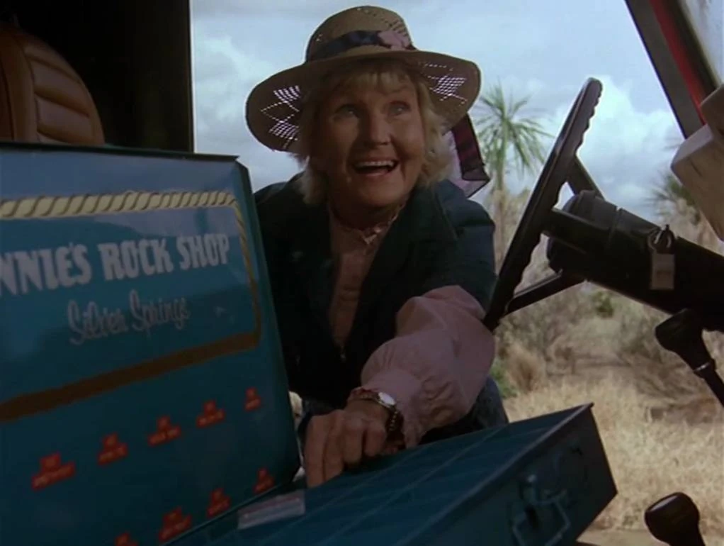 Annie is described as "a harmless old lady" who "lives in a world by herself". She owns "Annie's Rock Shop" in Silver Springs (probably Silver Springs, Nevada, and makes trips into the desert to collect rock samples for sale in her shop.