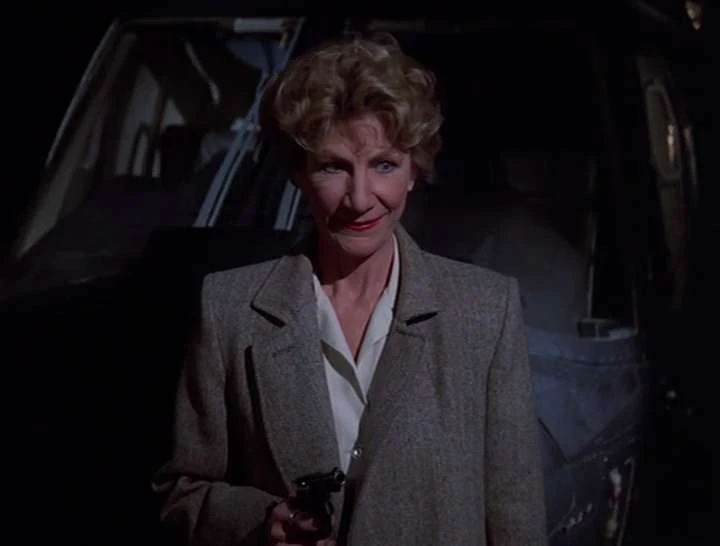 Else Manheim, having shed her nurse disguise, now holds Hawke and Susan Hill captive in the hold of the C-130.