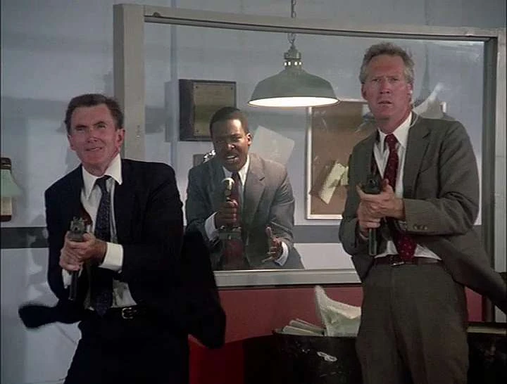 FIRM security guards open fire at Redwolf which is being stolen. Not surprisingly, their bullets have no effect.