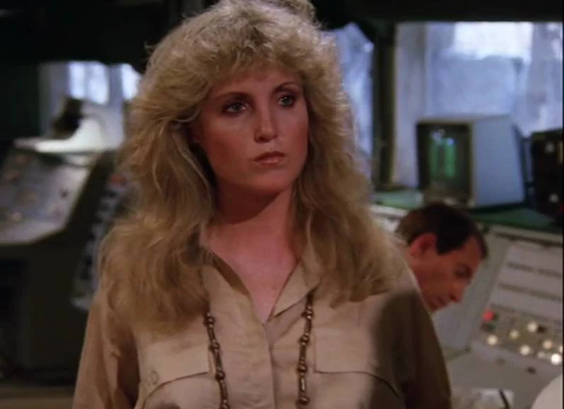She was in Angie's bar when she heard Eddie Donahough ranting about seeing UFOs (actually Sandower's helicopter flying at night). She also witnessed Hawke and Dominic being called in to help get Eddie off the premises and back to his trailer home. It is not clear if she was just in the bar on R&R or this was one of her duties: to keep her ear to the ground just in case security is breached and the locals start noticing something about Sandower's secret missile base.